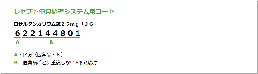 医療機関が審査支払機関に電子レセプトを提出する際などに、レセプト電算処理システムで使用する9桁のコードです。薬価基準に収載されている医薬品を対象としています。レセ電算コード、レセコード、請求コードとも呼ばれています。