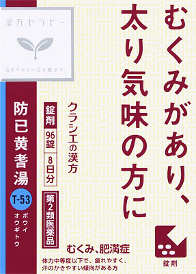 体力中等度以下で、疲れやすく、汗のかきやすい傾向があるものの次の諸症:肥満に伴う関節の腫れや肥満に伴う関節の痛み、むくみ、多汗症、肥満症(筋肉にしまりのない、いわゆる水ぶとり)。